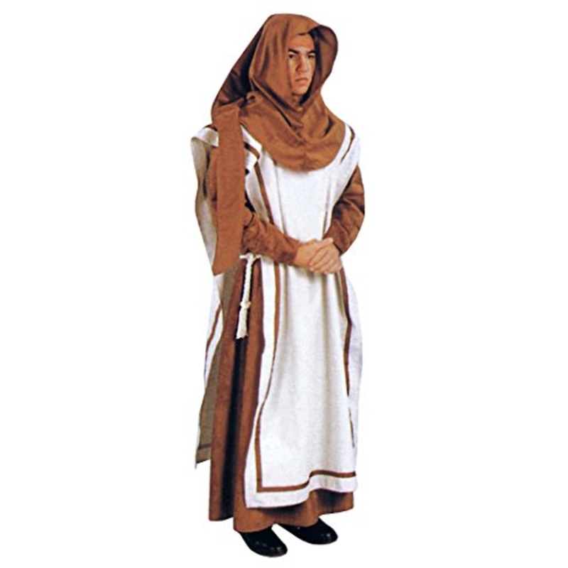 Includes: Brown suede cloth gown & hood, Rough cotton over Tunic w/brown trim & rope belt.Color: BrownSize: One Size (40-48)Overrobe: 60% Polyester/40% Cotton / Undergown and Hood: 100% Polyester /Trim: 100% Polyester / Belt: 100% Cotton /Made in USA /Mach