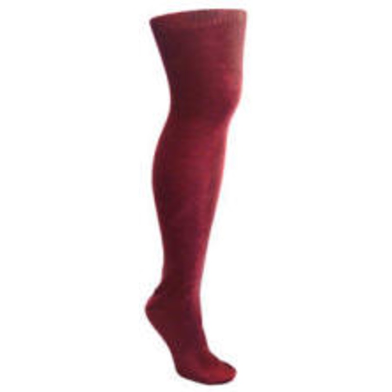 Over the knee fitted socks.99% cotton & 1% elastic. Footed.Color: Maroon, Natural Unbleached, WhiteSize: Total length is 35". Top to heel length is 25".Fits size 11-13AJRen
