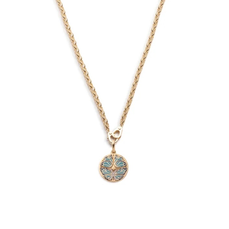 Crafted in 18k Yellow Gold, our Reverie Sister Hook Medium Belcher Chain Necklace features our sister hook closure. Embellished with our Reverie Large Ceramic Medallion, this 36 chain is symbolic of our Reverie tenet. Reverie is the path to joy. When we align our authentic selves with our outward expression, we feel the joy of being alive. This harmony radiates outward for all to see, and our souls are free to soar like a butterfly.
