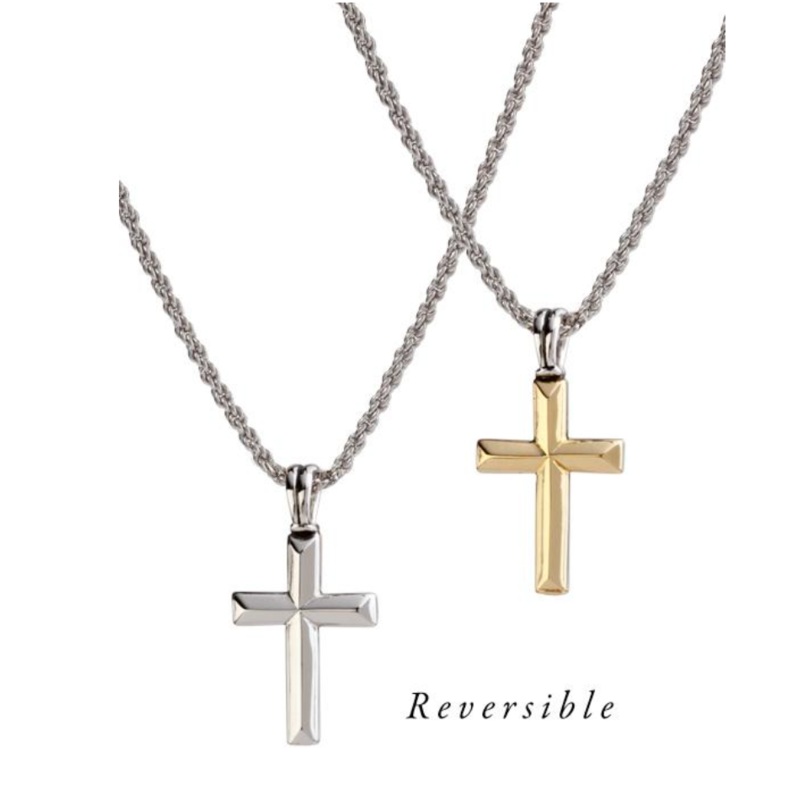 Reversible Gold / Rhodium Cross Necklace by John Medeiros Jewelry CollectionsCross: 1"L x 5/8"W x 3/16"Thick