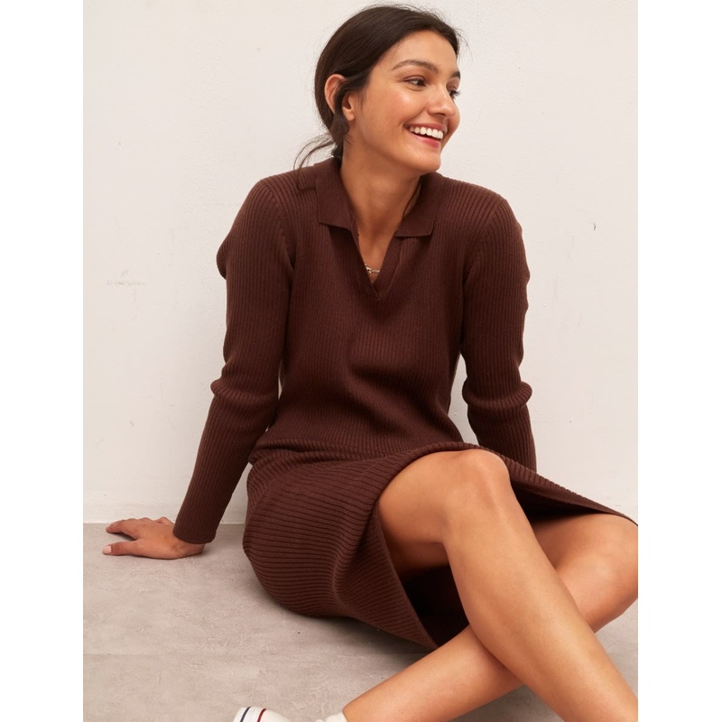 Like your favourite sweater, but longer. This midi dress is made from a supersoft blend of fabrics and features a slim fit. A collared neckline and ribbed texture provide all the fine details. Wear yours with chunky boots.