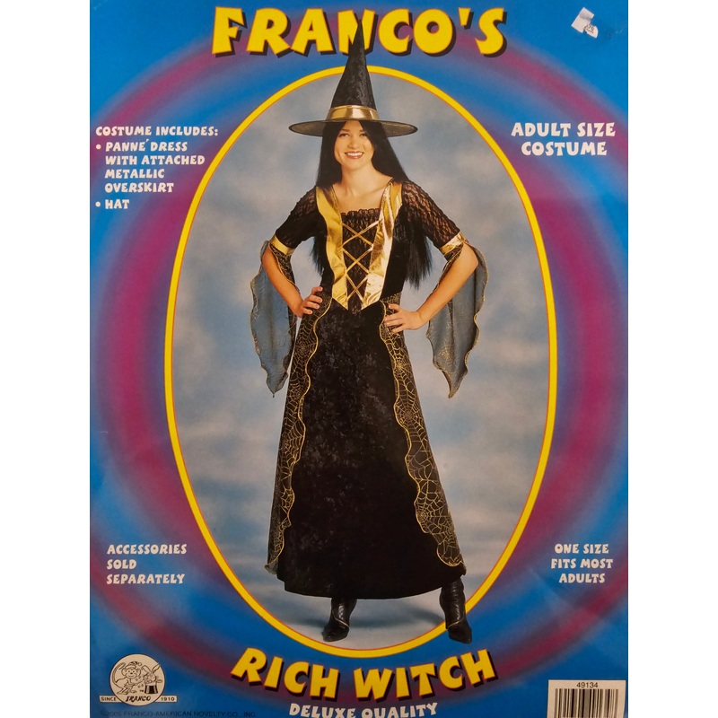 Franco's Rich WitchIncludes: Panne Dress with attached metallic overskirt, HatAccessories sold separatelySize: One Size Fits Most AdultsFRA49134