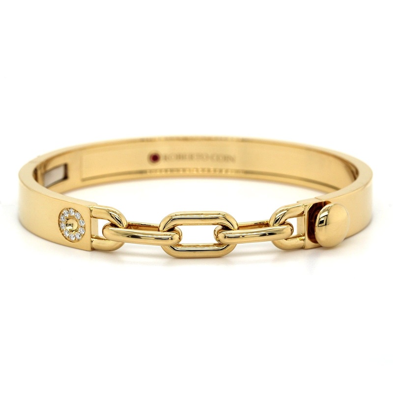 S993201078Roberto Coin 18K Yellow Gold Diamond Navarra Chain Bangle