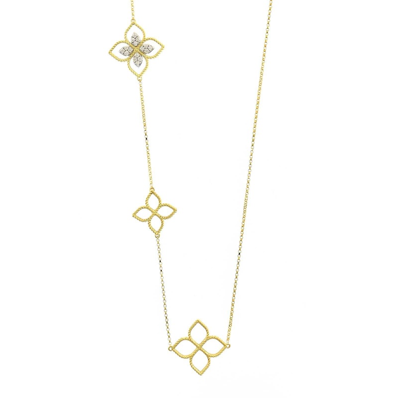 18k yellow gold necklace with diamond stations.