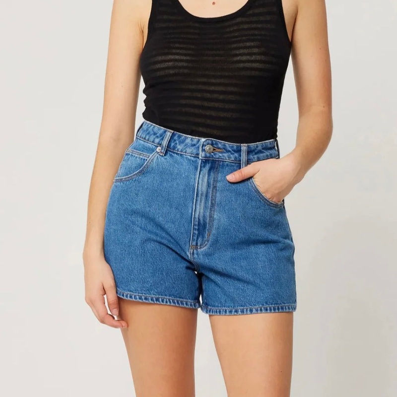 The classic denim summer short by Rollas. A high rise, relaxed fit with a modest length. Prewashed to create the perfect 'worn in' look. - A high rise short with a relaxed cheeky fit - Raw hem & zip fly - Modest length - Rolla's signature pockets & trims -