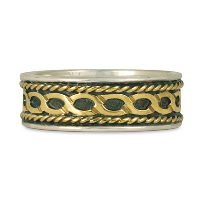 This design is based on the simplicity and elegance of the circle. The circle of the ring represents undying love, and the continuation of renewed vows. The circle also speaks to the constant round of the heavens, as well as the eternal return of the seasons, marked by cyclical ritual and celebration.