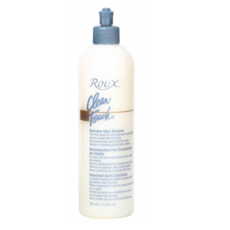 Roux Clean Touch Hair Color Stain Remover assists in removing stains from clothes. Also removes color from skin and excess color build-up on porous ends.The final touch for every haircolor application.Quickly erases tint from skin.Removes excess color from
