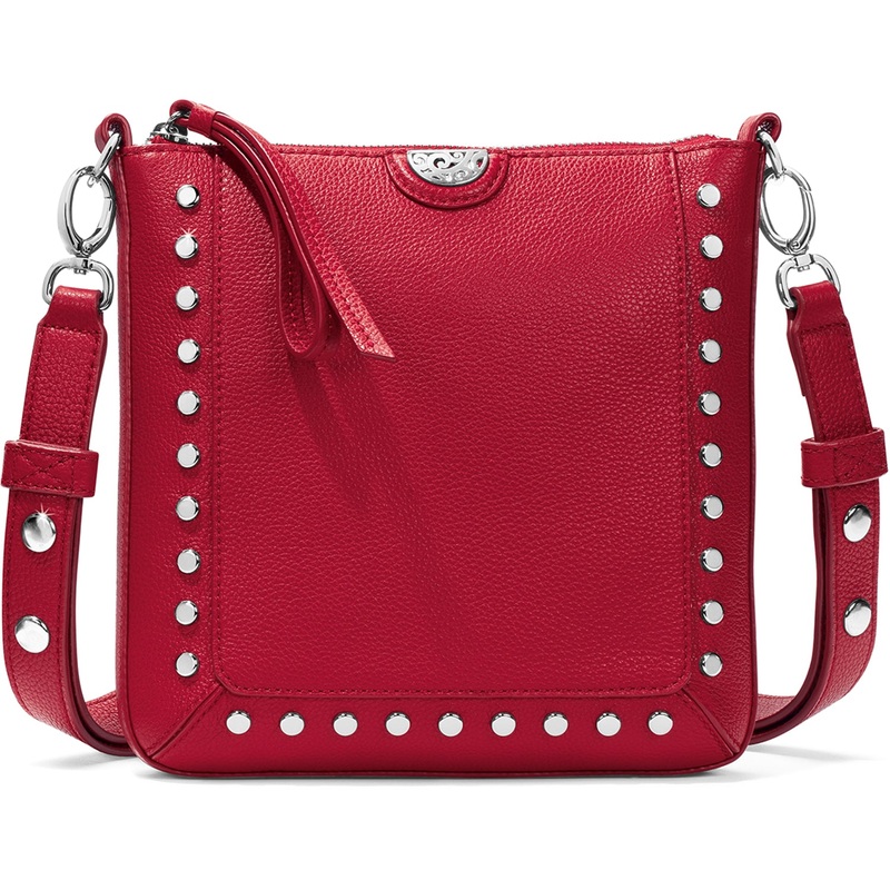 Outlined in flat nailheads, this slender crossbody blends city girl chic with every-wearability. Its strap is both adjustable and removable. Zips close for security, and its back pocket is cellphone friendly.