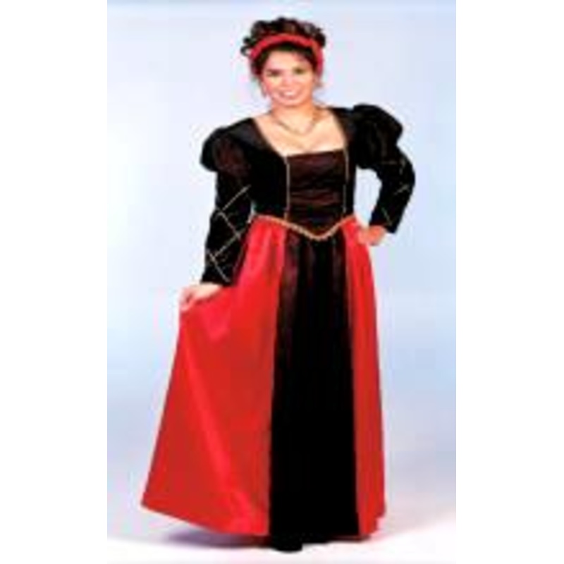 Excellent QualityBlack & gold, lace up back, top with separate floor length red & black skirt (2 piece) and matchingrenaissance headpiece.Size: XS (2-4), S (6-8),M (10-12), L (12-14)