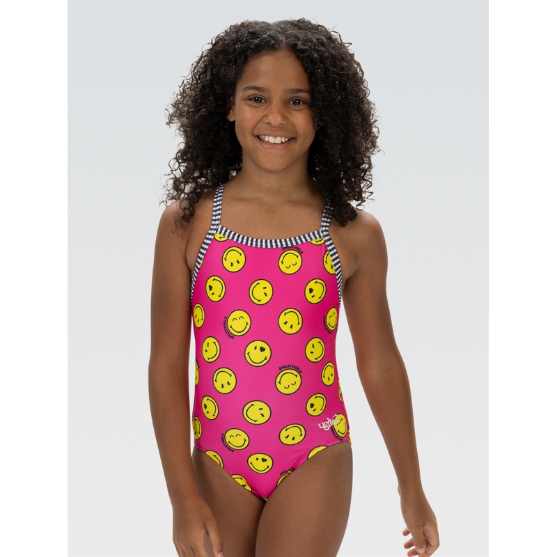 Limited Availability, get it while it lasts!Splash into confidence with the Uglies Girls' | SmileyWorld All Smiles Criss Cross Back One Piece! This fun and vibrant swimsuit, from the Uglies | SmileyWorld collab, empowers you to be yourself. The playful Smi