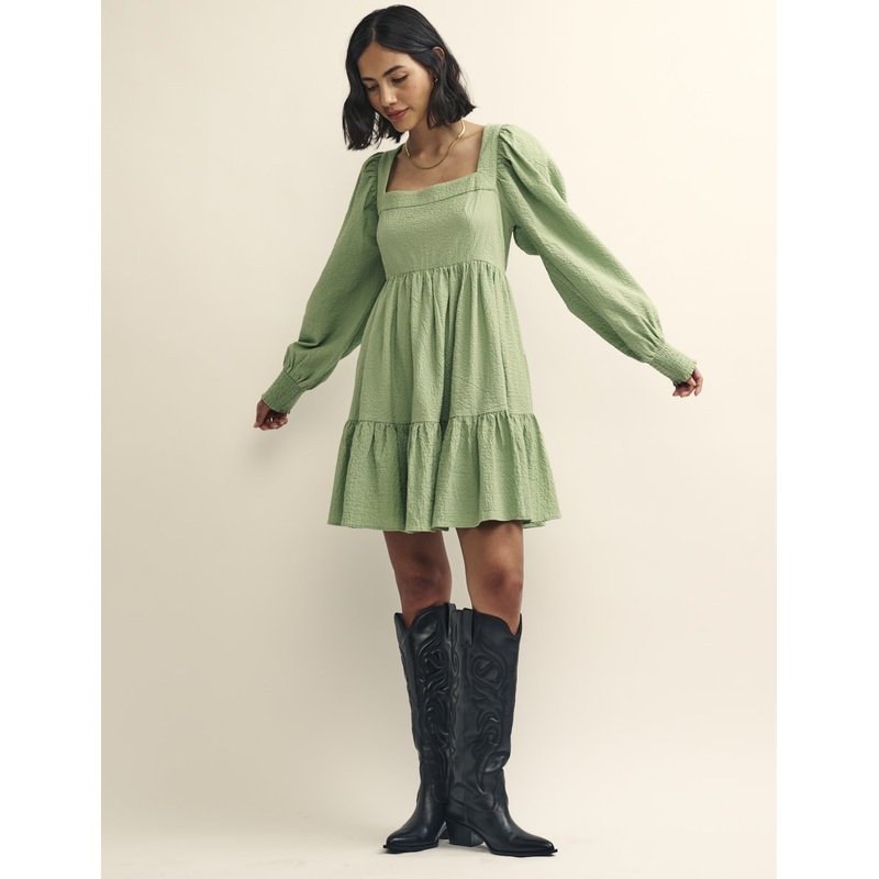 Say hello to Ayla. The flippy mini length comes finished with tiers, complemented by a square neckline and shirred balloon sleeves. Style yours with western boots.Square neckLong balloon sleevesOversized smock fit
