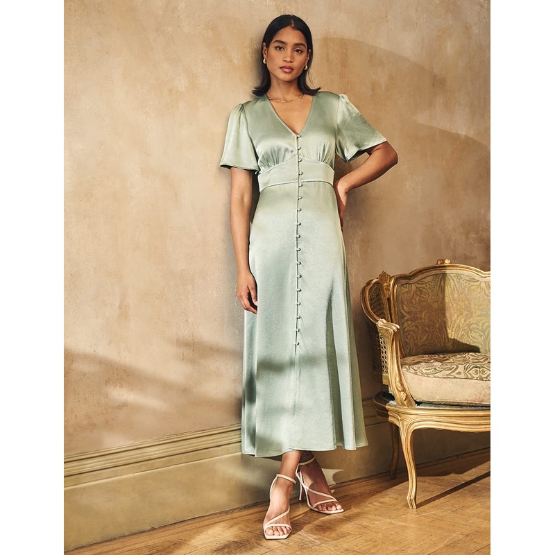 Sage Green Satin Erin Bridesmaid Midaxi Dress