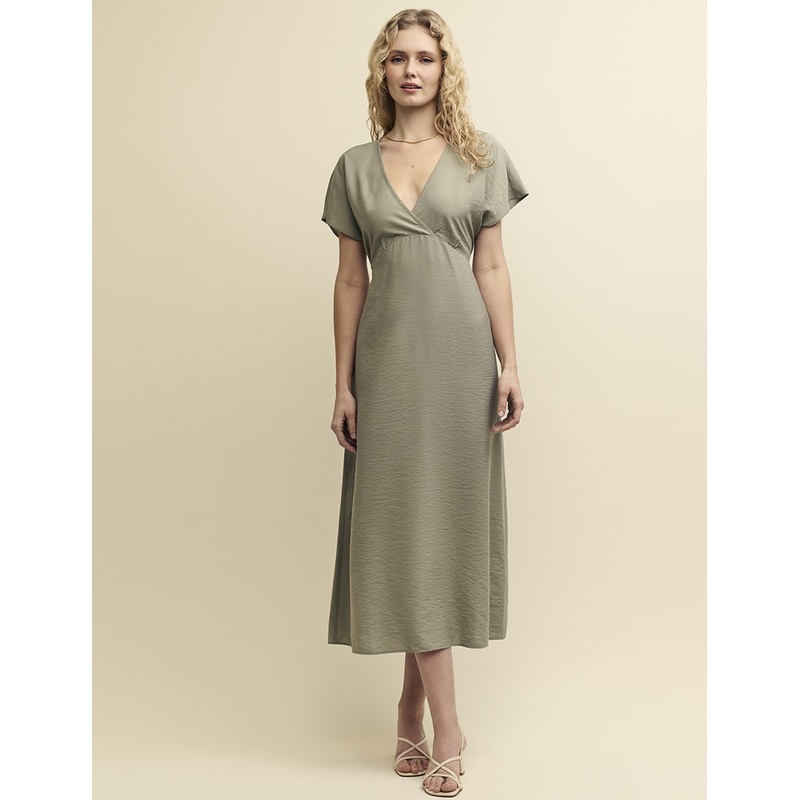 Say hello to Anola. Perfect for spring in sage green, shes a midaxi dress with a flattering kimono style neckline. The fabric is light and drapes like a dream. Style yours with everything from retro trainers to stompy boots.V-neckBack tie detailRelaxed ski