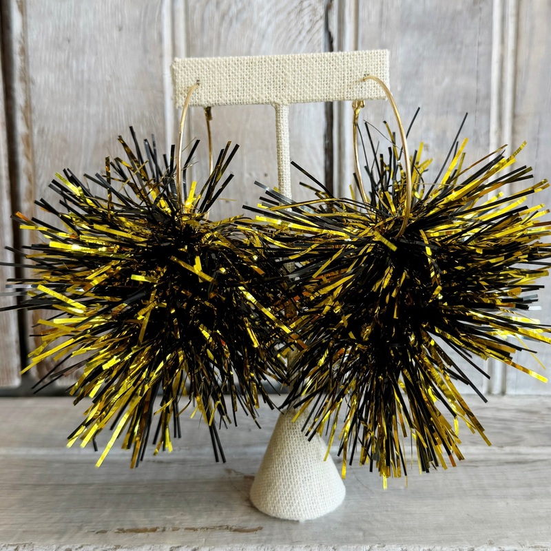 Be the first to review “Saints Pom Pom Hoop Earring-black/gold”