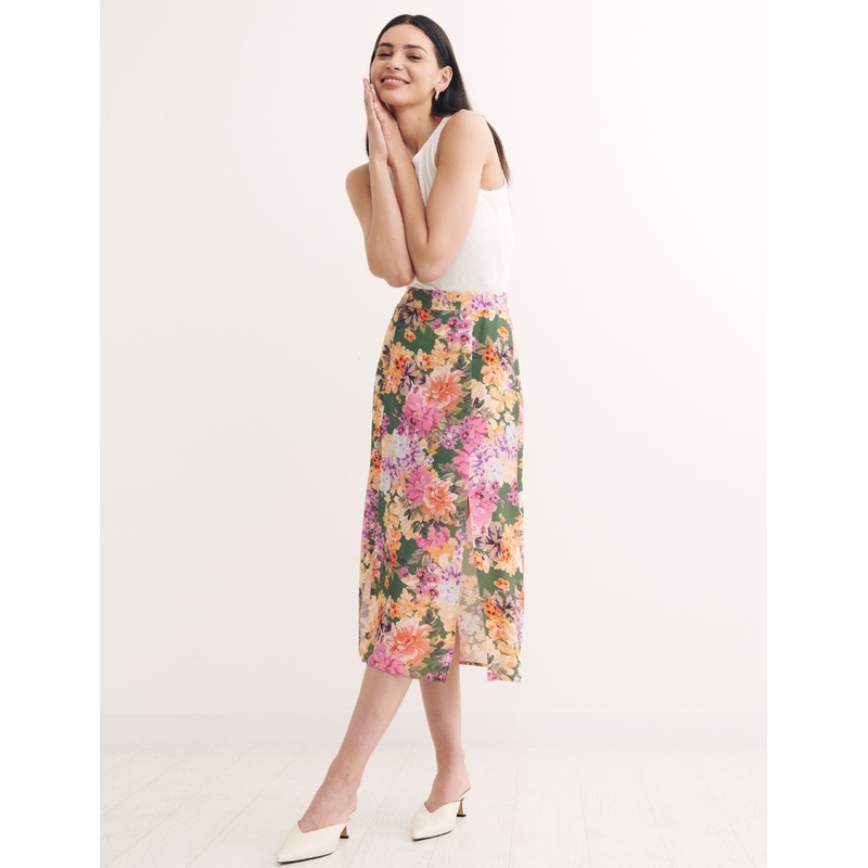 Printed with an array of pretty blooms, this Sara midi skirt is reminiscent of patterns from the 70s. It's made from light fabric that's cut to skim your curves and features two leg slits on the side. Complete with a concealed zip fastening, pair with a bl