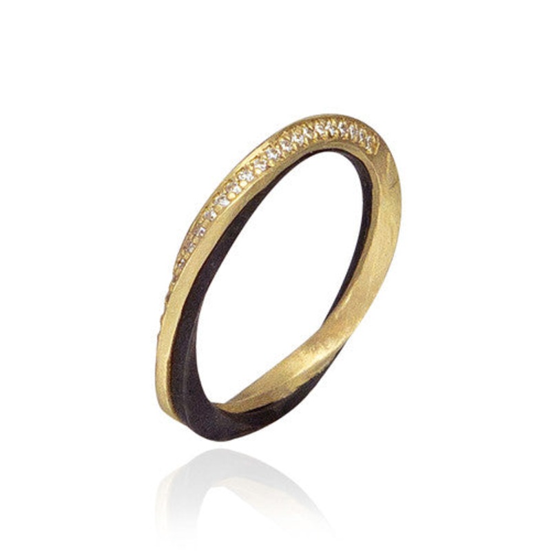 By metalsmith and designer Sarah Graham, Eclipse Narrow Band with 0.11cttw of White Diamonds in 18K Yellow Gold and Cobalt Chrome 0.11cttw