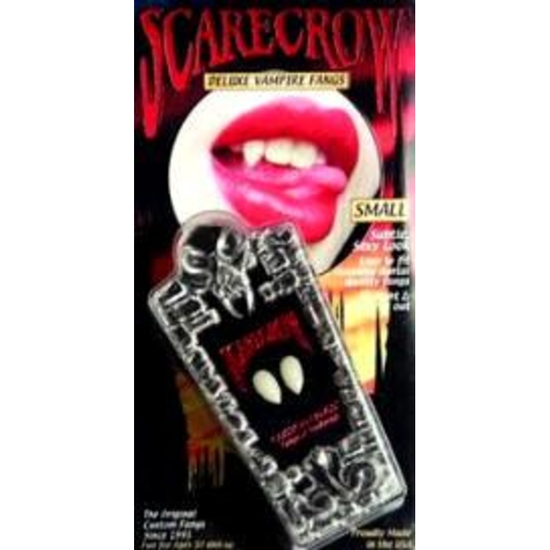 Smaller Deluxe Vampire Fangs! These fangs are smaller for a more realistic, subtle, sexy look.Comes complete with a customizing kit. The custom fitting materials in each kit forms a permanentmold of your tooth inside each fang cap.