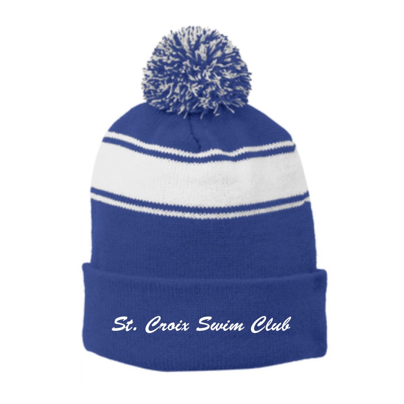 M58185892884SCSC Stripe Pom Beanie|ROYAL/WHITE
