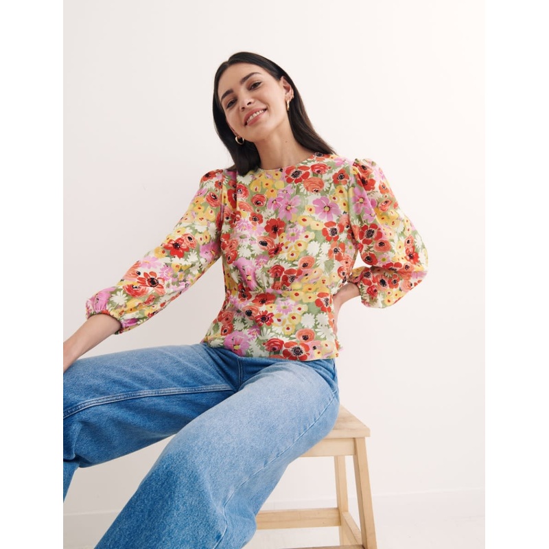 Detailed with an array of bright florals, our Selena blouse gives a subtle nod to the cottagecore vibe with voluminous long sleeves. A classic frame comes courtesy of the round neckline and slim fit, complete with a nape button to finish. Pair yours with your favourite denim for a look that will last.