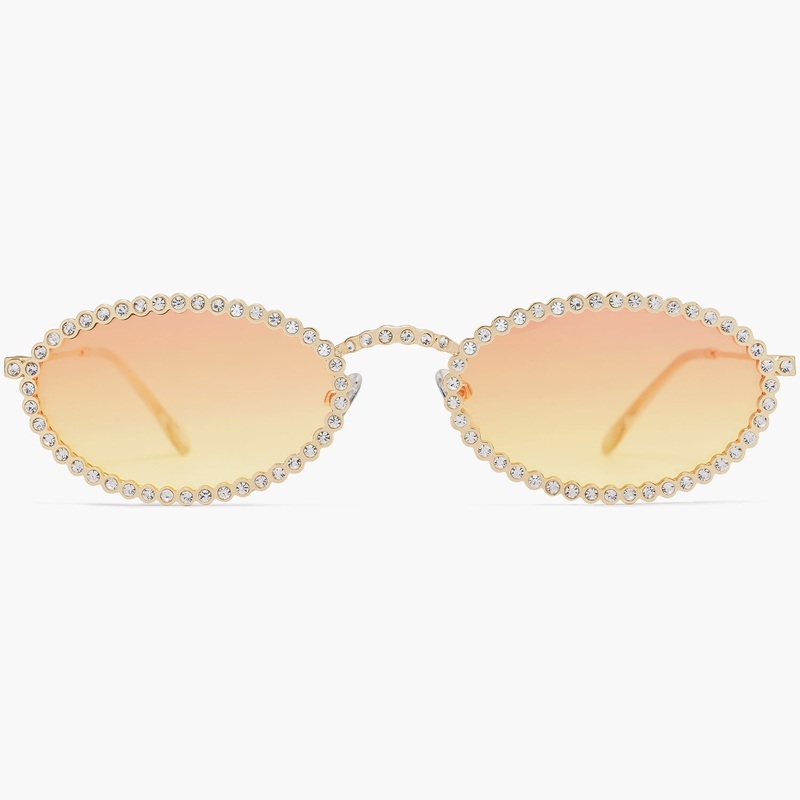Make a statement in these 90s-style oval rhinestone sunglasses for women. The unique sparkle and bling of these trendy glasses are sure to turn heads, while the small face size offers a comfortable fit. Add some doorway appeal to your wardrobe with these s