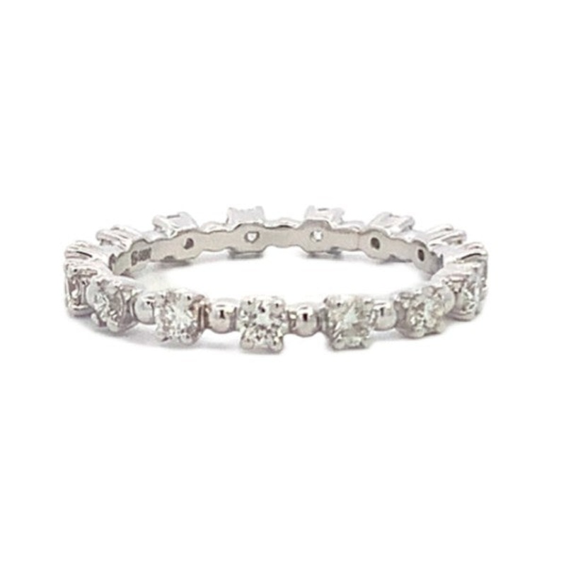 The Sethi Josie prong white diamond band is synonymous with simple elegance. Brilliant-cut white diamonds sparkle with superior shine in this classic eternity band.0.75cttw