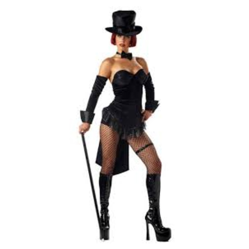 Includes: Black velvet like strapless mini dress with bottom sequin trim, matching black hot pants,top hat, bow tie, glovelettes with sequin cuffs & elastic sequin garter. ***90% Polyester, 10% Metallic KnitHand Wash, Cold Water, Line Dry,Do Not Tumble Dry