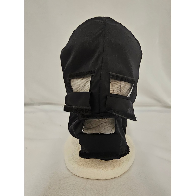 Includes: 1 Face covering S&MHood with velcro eyes & mouth and open ear holes