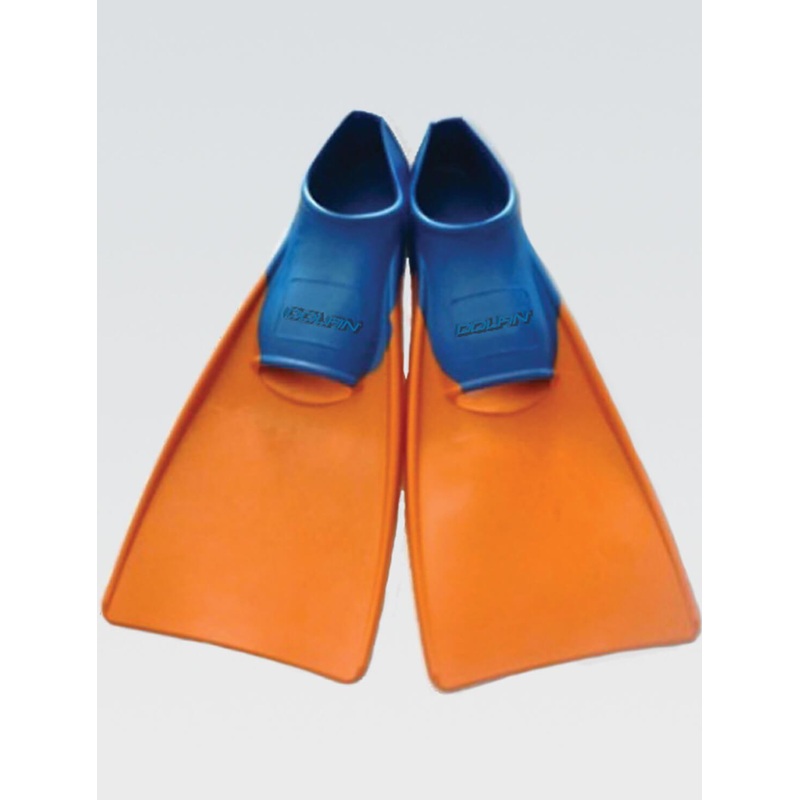The Dolfin Swim Fin is sure to be your everyday accessory at your next practice or day at the pool. With a flexible foot pocket and long blade in fun colors based on size.Features & Benefits:Size reflective of two-tone color, Orange fin with Royal foot poc