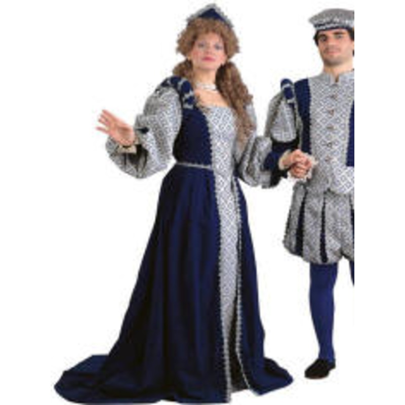 Includes: Velvet hat w/veil & silver braid trim & brocade & velvet gown w/satin & silver braid trim.Color: Blue, Burgundy, Black, Brown, Green, Gray, Red, RustSize: S (6-10), M (10-14), L (14-16)