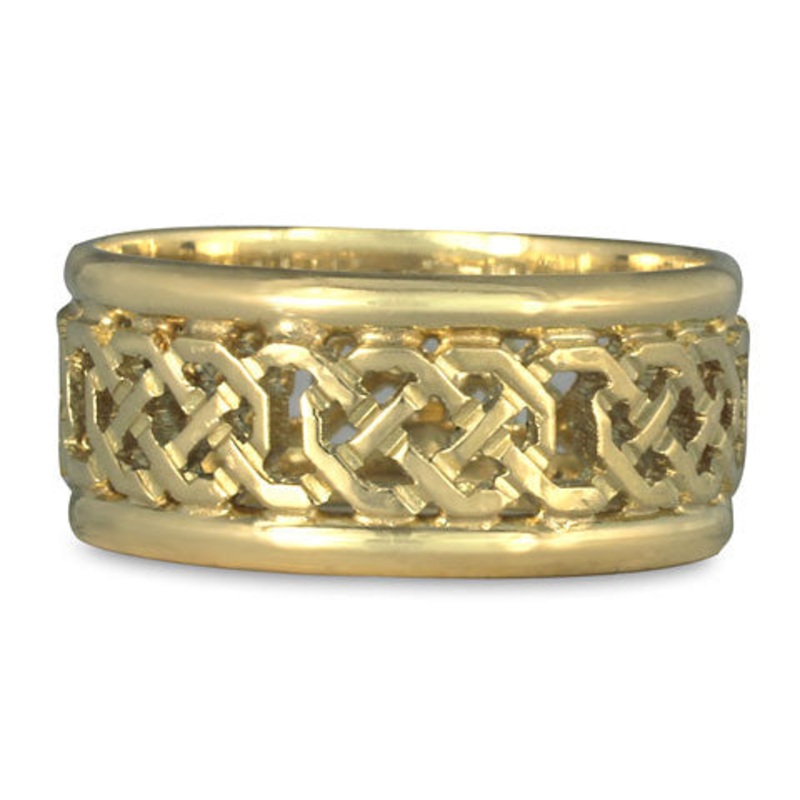Gazing through the Shannon Window ring, the paired knots revolve around the unending band with fluidity and grace, while casted shadows dance along the illustriousness of the band. 18K Yellow Gold Dimensions: 9mm Wide Shannon Knot: This knot, with its cris