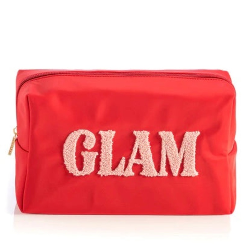 Store your odds and ends with Shiraleahs Cara "Glam" Cosmetic Pouch. This pouch features the word "GLAM" in sherpa lettering adding texture and a fun detail to this essential pouch. Measuring L 10" W 4" H 6", and made from nylon, the Cara "Glam" Cosmetic P