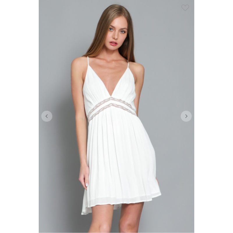 SHORT GAUZY DRESS W/ OPEN BACK + LACE TRIM DRESSS:100% RAYON L:100% RAYON