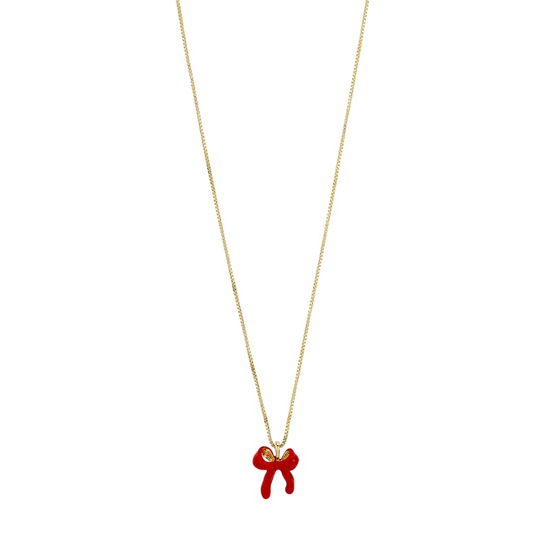 Tie it up with a pop of red! The gold-plated bow necklace from embraces the seasons hottest trend bows! The small red enamel bow pendant adds a cute and trendy touch, giving your style a playful twist. With a box chain measuring 40 cm + 9 cm extension chai