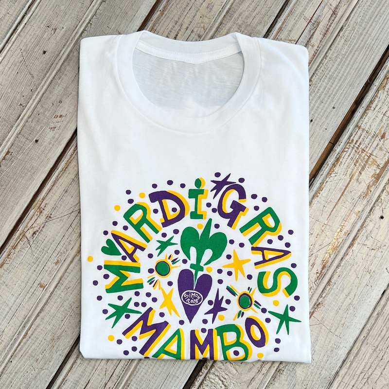 Simon Mardi Gras Mambo Tee.Unisex Fit.
