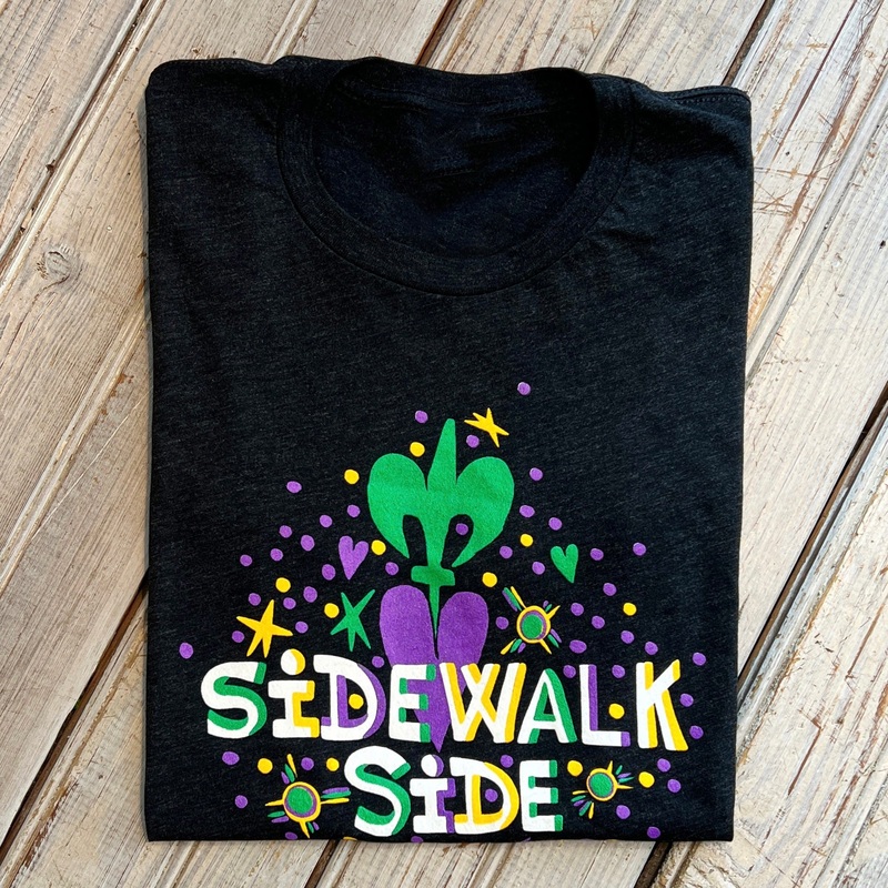 Simon New Orleans Sidewalk Side Tee.Mardi Gras Tee. Unisex fit. Slim fit.