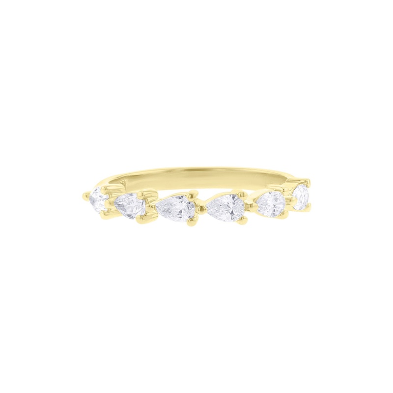 Be charmed by this one-of-a-kind Simply Pear Diamond Wedding Ring. Boasting six pear-shaped diamonds for a total weight of 1/2 carat, set in 14 karat gold, this sophisticated and unique piece is sure to become a treasured heirloom.