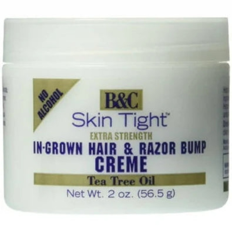 B and C skin tight extra strength in-grown hair and razor bump creme, alcohol free. Ideal for bikini line area. For men and women. Helps to moisturize, soften and smooth the skin. Formulated to gently exfoliate the skin. Specifically for in-grown hairs, ra