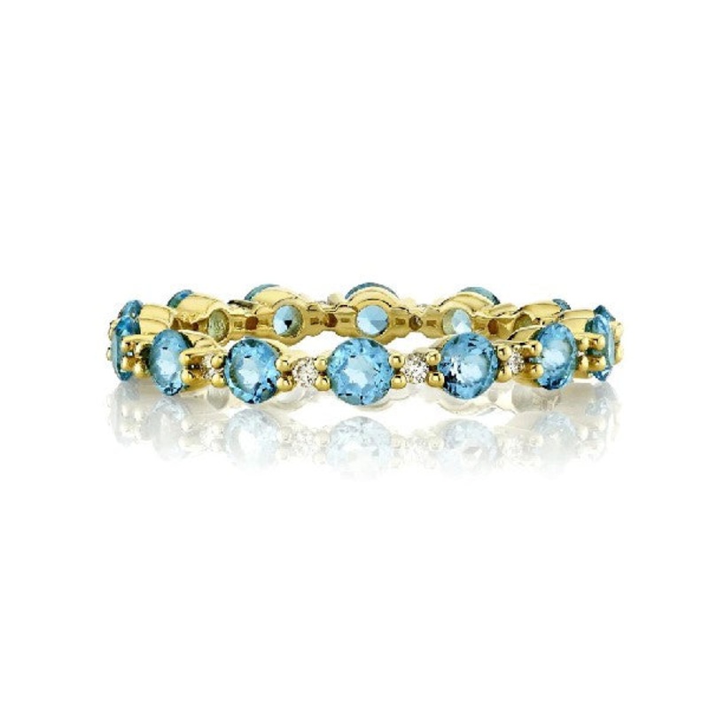 18K yellow gold eternity ring with alternating Swiss blue topaz (1.66cttw) and diamonds 0.14cttw