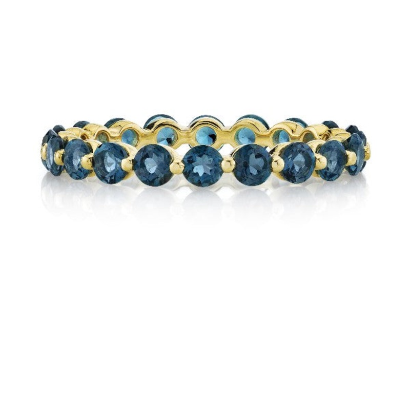 18K yellow gold eternity band with round cut london blue topaz-1.95cttw