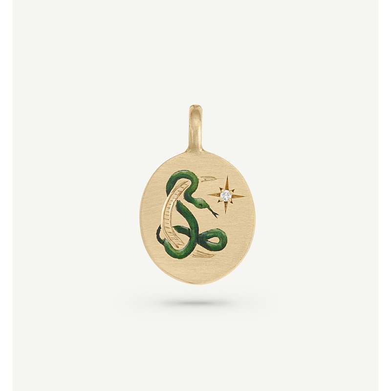 An engraved moon illuminates one of the most storied motifs in history. The beguiling snake knows its power – tempting, changing, creating. Harness these dual symbols of change and reinvention in a talisman of personal empowerment.