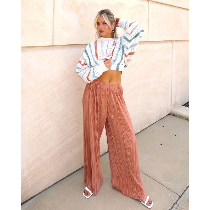 Step into effortless elegance with our So Charming High Waist Plisse Pants. Designed for the ultimate in relaxed sophistication, these pants feature a flattering high waist and an easy elastic waistband for comfort that moves with you. The delicate plisse