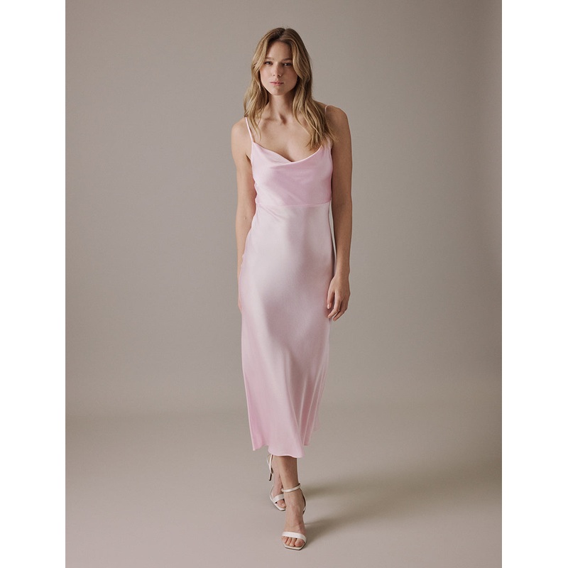 Walk down the aisle in style with the NC bridal party collection. This soft pink slinky slip is framed by barely-there straps and a soft cowl neckline thats perfect for summer weddings and far-flung destinations. Cut on the bias, the lightly flared midaxi