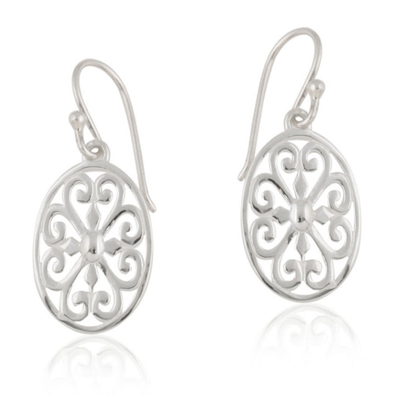 18x13mm925 sterling silverDesigned and distributed in Charleston, SCBeautiful scroll designs reminiscent of the ironwork found in historic churches, chapels, and cathedrals have inspired this intricate filigree jewelry.Recommended Care Instructions: 925 st
