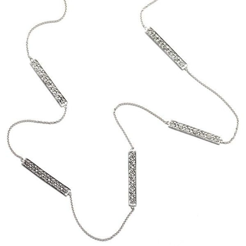 36 inRhodium-plated 925 sterling silverDesigned and distributed in Charleston, SCInspired by beautiful wrought-iron balconies that grace the South, this series features strong lines and delicate details in both 14k gold plate and sterling silver.Recommende