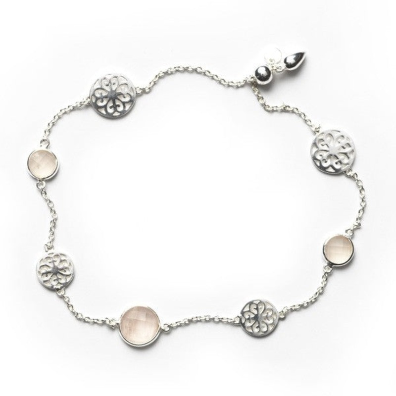 6.25-8 in925 sterling silver & rose quartzDesigned and distributed in Charleston, SCBeautiful scroll designs reminiscent of the ironwork found in historic churches, chapels, and cathedrals have inspired this intricate filigree jewelry.Recommended Care Inst