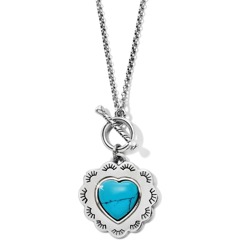A new heart-shaped necklace with a boho-chic feel. Accented with a turquoise magnesite known for its powers of love.