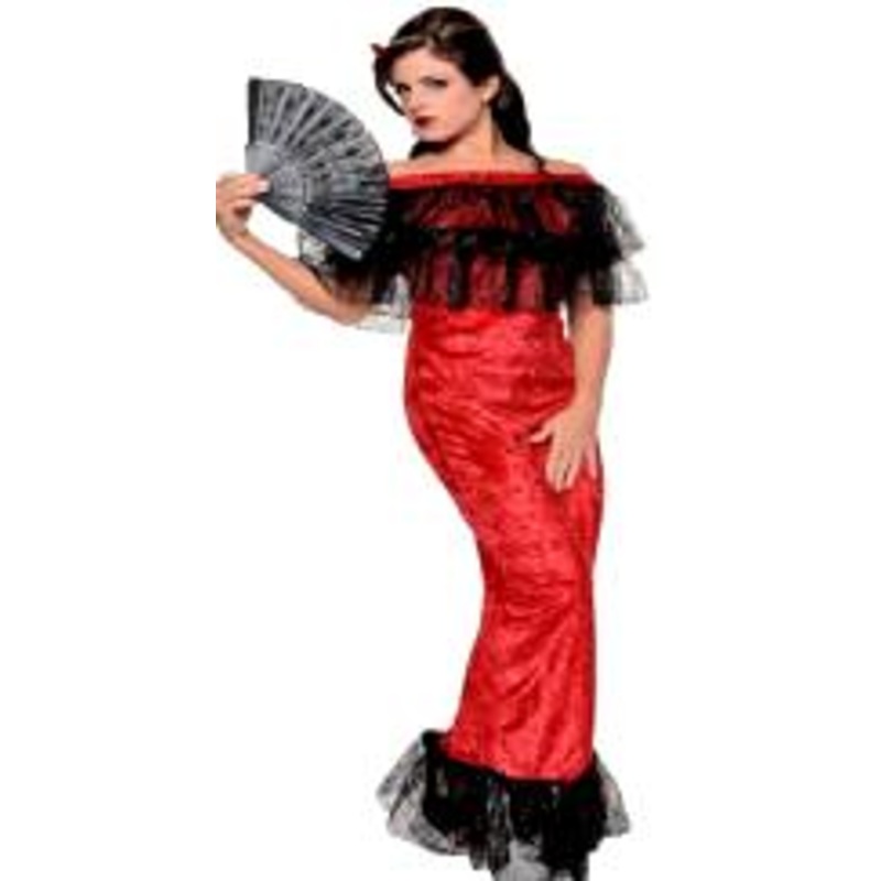 Includes: Red Panne’ Velvet long dress accented with black lace trim atbodice & bottom.