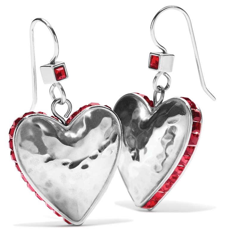 Shining silver hearts are rimmed in a radiant spectrum of different shades of red fine quality crystals a symbol of love everlasting.