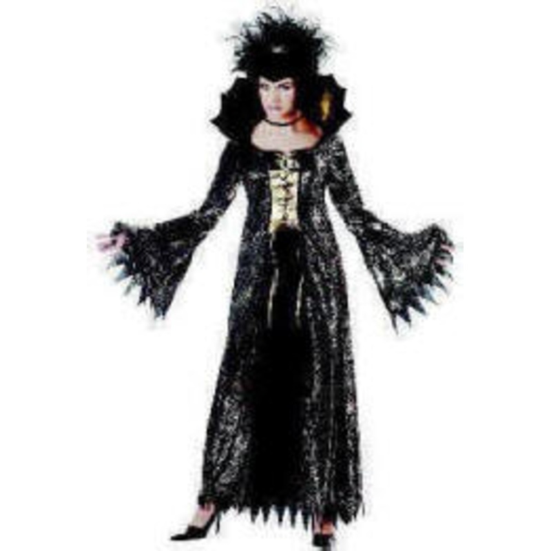 Very NiceIncludes: Poly Dress w/Foil Spider Web Print, attached Lame & Foam Collar, Crisscross Tie Detail &Ribbon Choker.Color: Gold/Black, Silver/BlackSize: S (6-8), M (8-10),L (10-12), XL (12-14)
