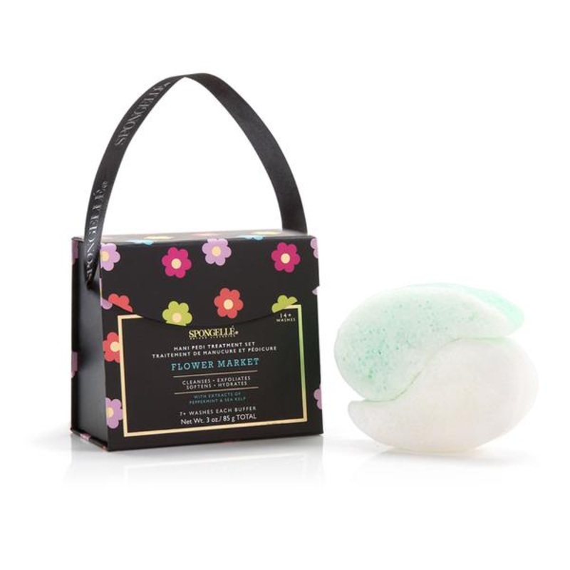 Spongelle's mani and pedi set is the perfect treat for your dry hands and tired feet. Infused with a skin-softening formulation & soothing extracts of peppermint & sea kelp, these dual-sided buffers will leave your hands & feet silky smooth. Good for fourt